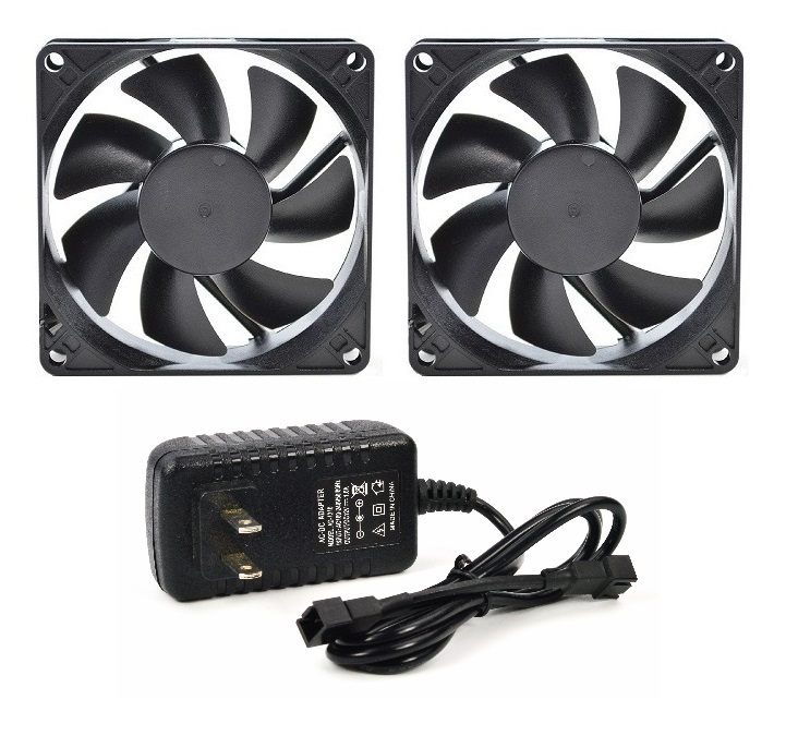 Two 80mm Thermistor controlled fans speed up as heat increases and will slow down as heat decreases.