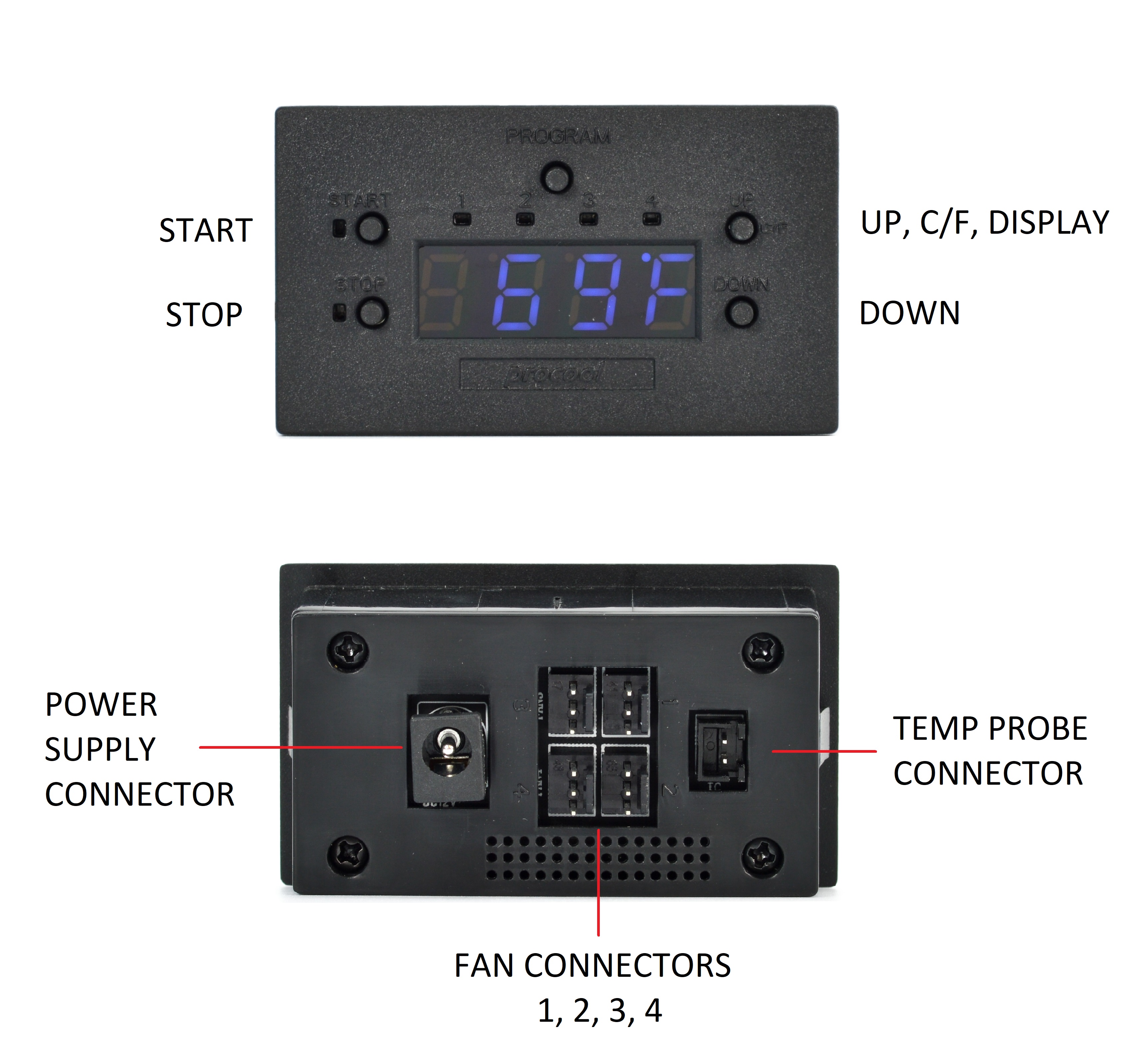 The fan controller starts and stops the fan(s) at user defined setpoints.