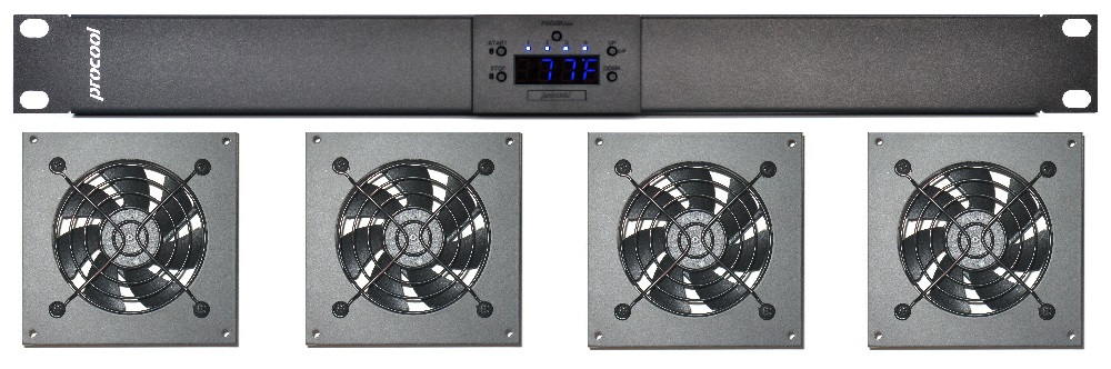The PROCOOL AVX-480T-1U is a 1U temperature controlled, variable speed silent fan system.
